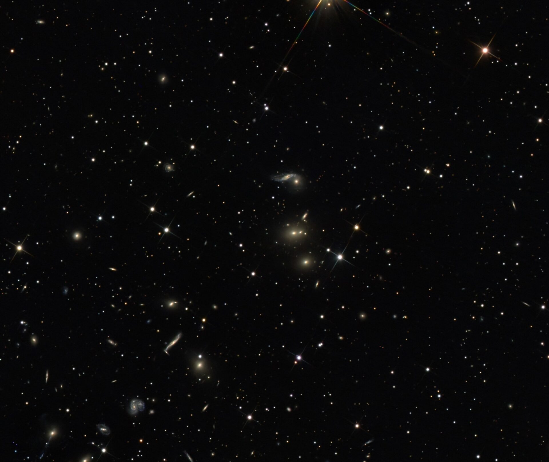 This cluster is 500 million light years from earth. In comparison, our own galaxy the Milkyway is about 100 000 light years in diameter.