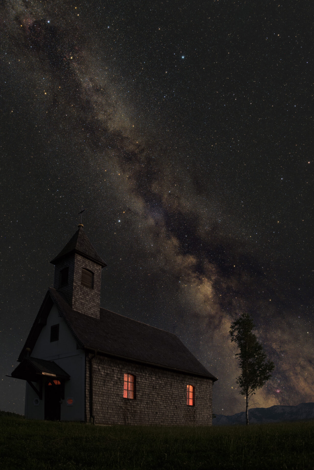 Stimmungsvolle Aufnahme der Gahberg-Kapelle vor der Sommermilchstrasse. Die Aufnahme entstand am 2. Juli 2025.