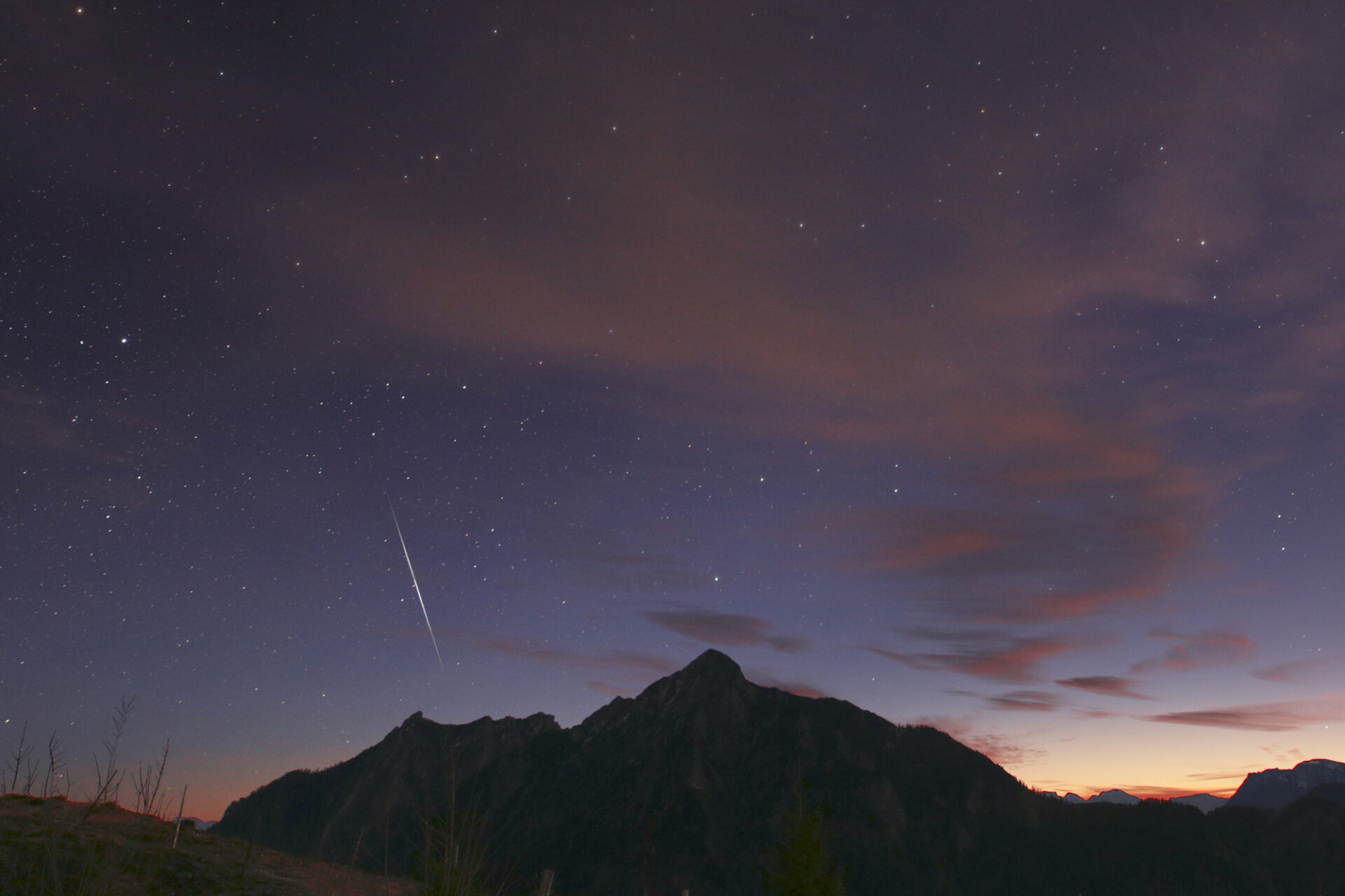 Objektname Geminiden Aufnahmedatum 14. Dezember 2025 - 6:17 Aufnahmeort Postalm Seeing Montierung Stativ Teleskop / Objektiv Sigma Art 20 mm Kamera Canon 6D Verwendete Filter Belichtungszeit in Stunden 20 Sekunden Verwendete Software Autor Hermann Koberger