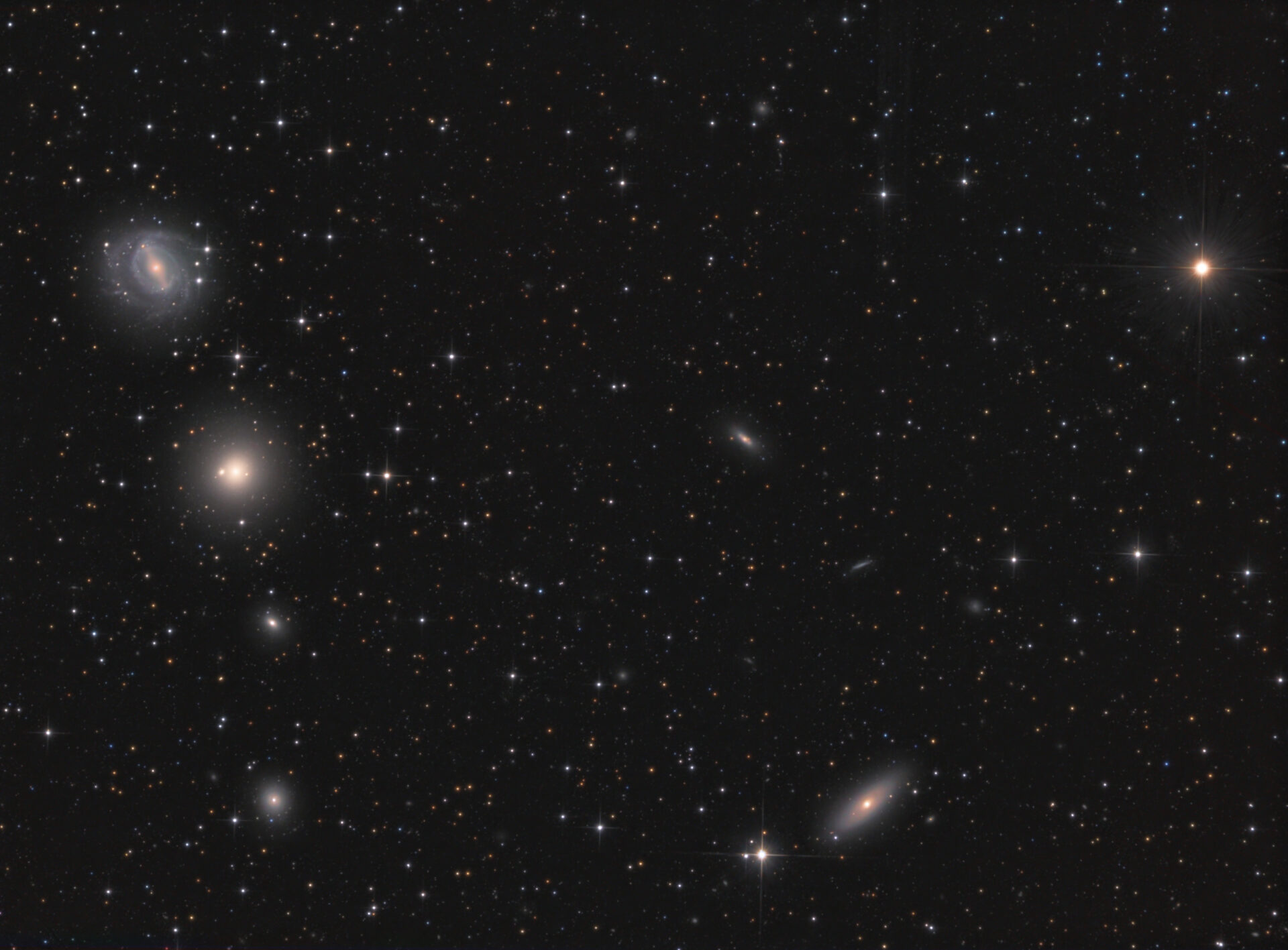 Objektname NGC 5846 + NGC 5850 Aufnahmedatum 2. Mai 2025 - 0:00 Aufnahmeort Erdweg/Bayern Seeing Mittel Montierung 10 Micron GM 1000 HPS Teleskop / Objektiv 10" Lacerta Newton Kamera SBIG ST8300M Verwendete Filter Baader LRGB