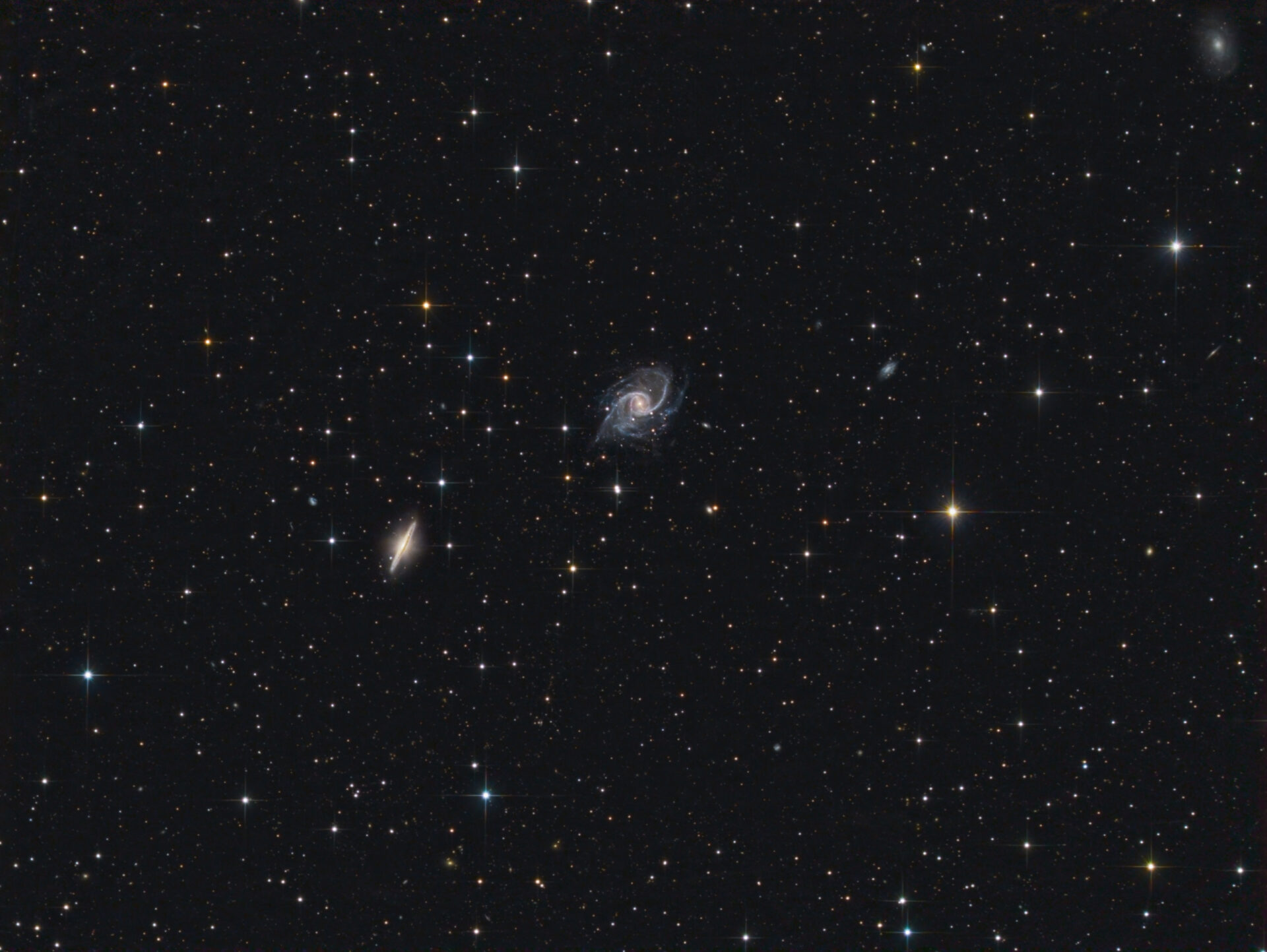Objektname NGC 5905 + NGC 5908 Aufnahmedatum 15. Mai 2024 - 0:00 Aufnahmeort Erdweg/Bayern Seeing Gut Montierung 10 Micron GM 1000 HPS Teleskop / Objektiv 10" Lacerta Newton (1:4) Kamera SBIG ST8300 M Verwendete Filter Baader LRGB