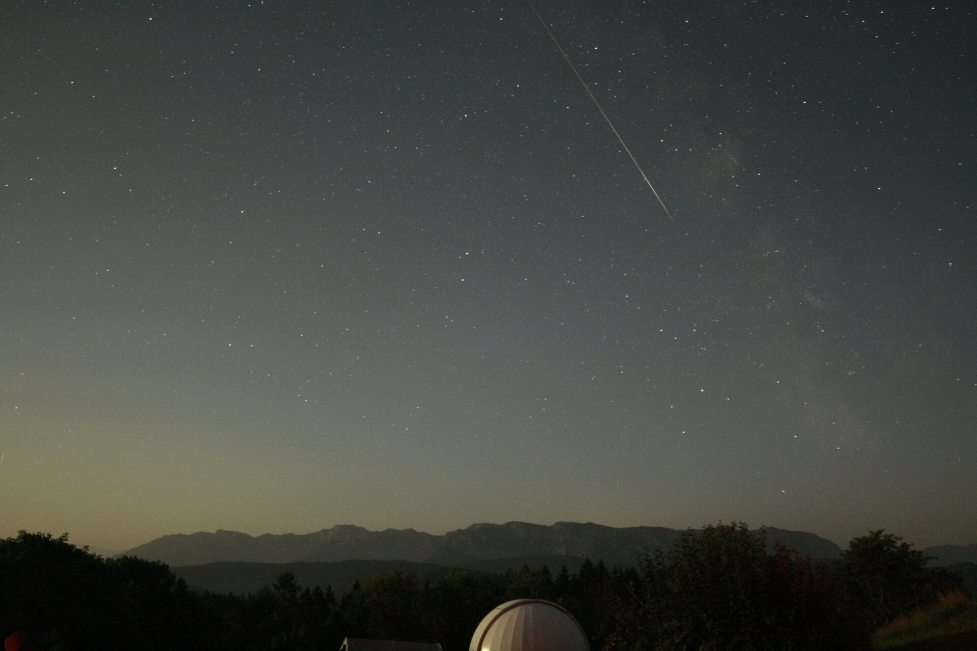 Objektname Sternschnuppe Aufnahmedatum 13. August 2025 - 23:04 Aufnahmeort Sternwarte Gahberg Seeing Gut Montierung Stativ Teleskop / Objektiv SIGMA 10-20 mm F4-5.6 (10 mm, F4.0) Kamera Canon EOS 1000D Verwendete Filter -