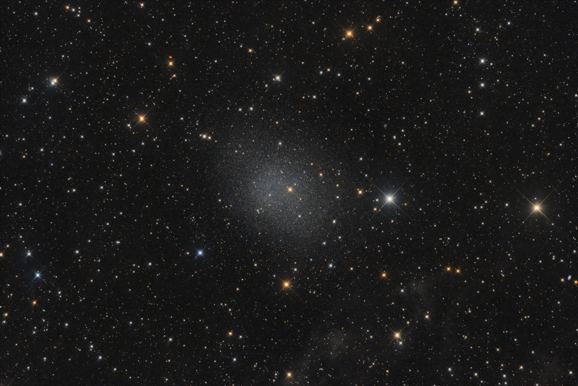 Objektname Fornax Dwarf (PGC 10093) Aufnahmedatum 24. Juli 2025 - 23:00 Aufnahmeort ROOISAND Remote, Rooisand Desert Ranch, Namibia Seeing Gut Montierung Fornax 102 Photo Teleskop / Objektiv Takahashi Epsilon 130ED Kamera Player One Poseidon C-pro Verwendete Filter Baader L