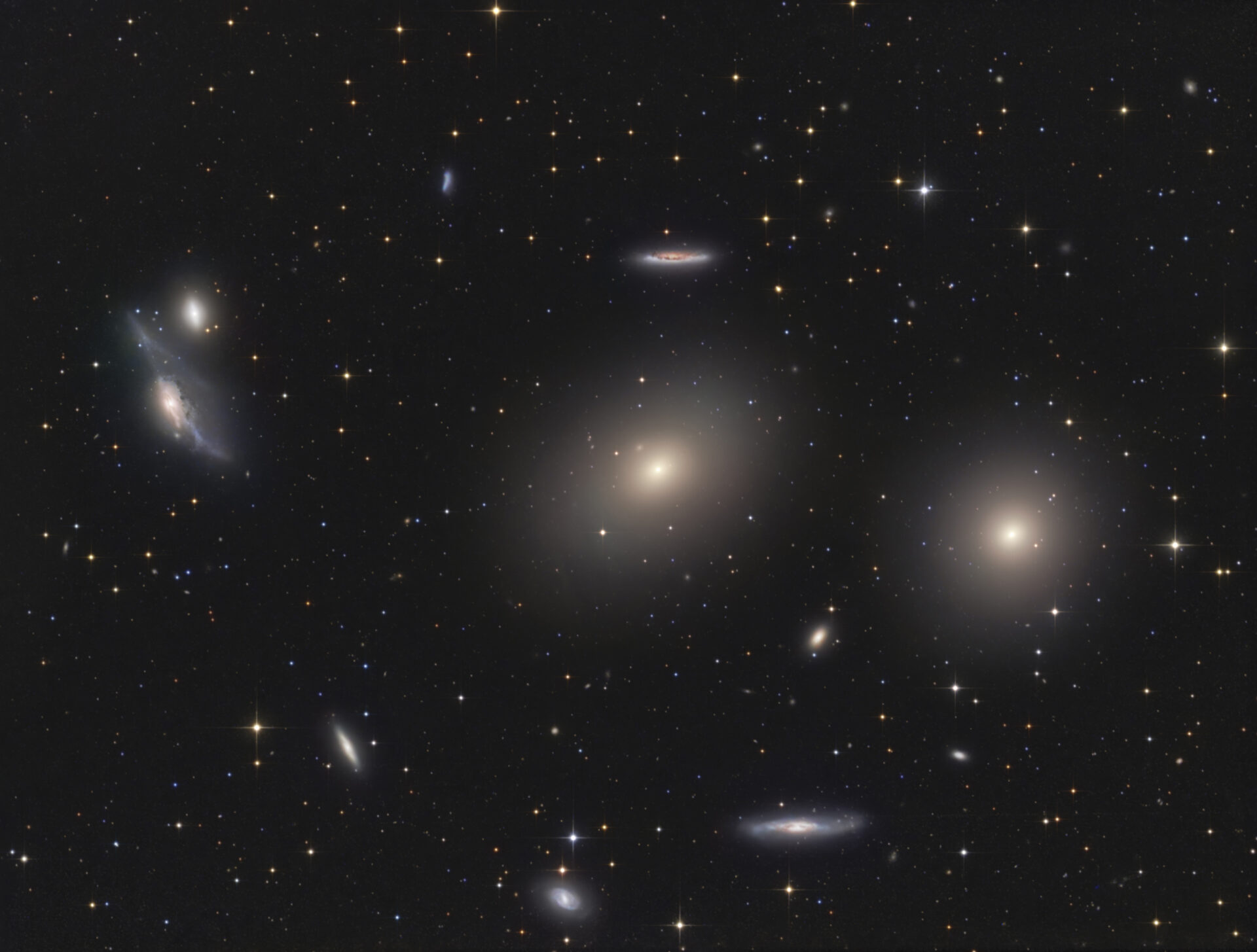 Objektname Virgohaufen Aufnahmedatum 14. April 2024 - 0:00 Aufnahmeort Erdweg/Bayern Seeing Mittel Montierung 10Micron GM 1000 HPS Teleskop / Objektiv 10" Lacerta Newton (1:4) Kamera SBIG ST8300M Verwendete Filter Baader LRGB