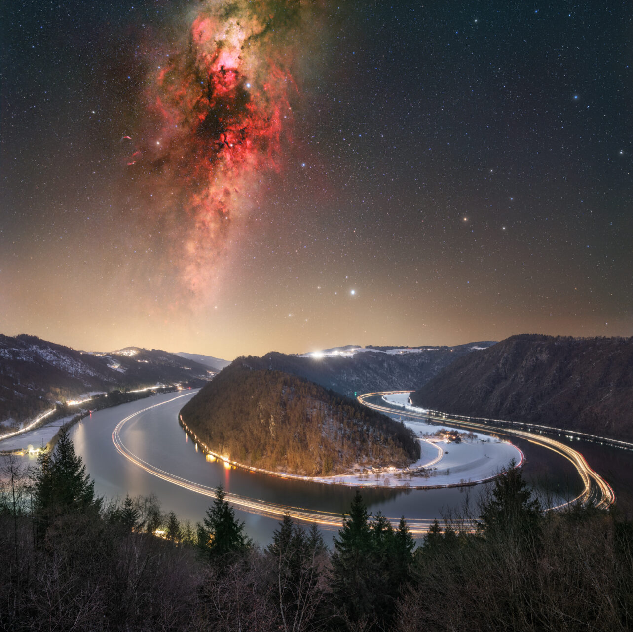Milchstraße / Schwan-Region über der Donauschlinge Schlögen