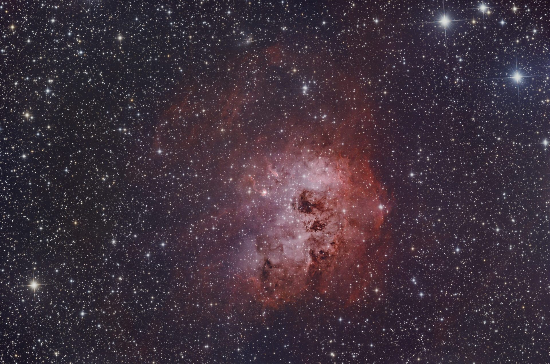 IC 410, dem Kaulquappen Nebel,  mit dem offenen Sternhaufen NGC 1893 im Sternbild Fuhrmann.
