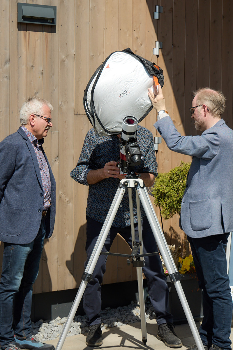 Neben einem abwechslungsreichen Vortragsprogramm gab es bei strahlendem Frühjahrswetter auch die Möglichkeit Sonnenteleskope zu testen.